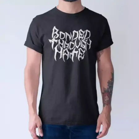 Bonded Through Hate Band T-Shirt, Bonded Through Hate Logo Black Tee Shirt, Death Metal Merchandise