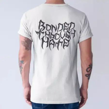 Bonded Through Hate Band T-Shirt, Bonded Through Hate Logo White Tee Shirt, Death Metal Merchandise