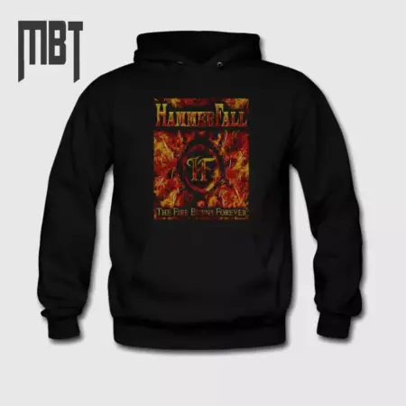 HammerFall Band Hoodie, HammerFall The Fire Burns Forever Cover Hooded Sweatshirt, Heavy Metal Merch