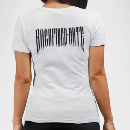 Backfired Hate Band T-Shirt, Backfired Hate Logo White Tee Shirt, Death Metal, Thrash Metal Merchandise