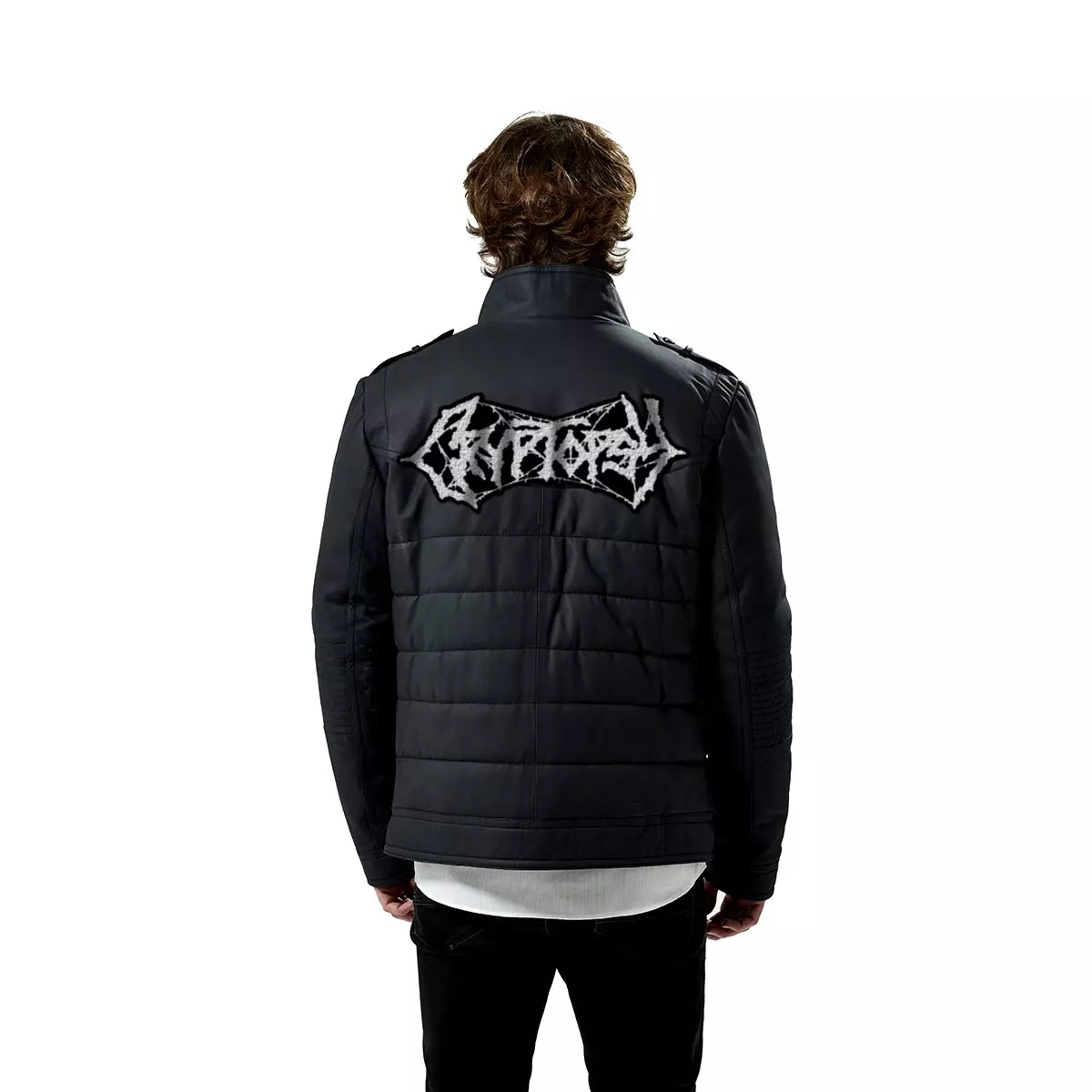 Cryptopsy Logo Patched Geniune Leather Jacket